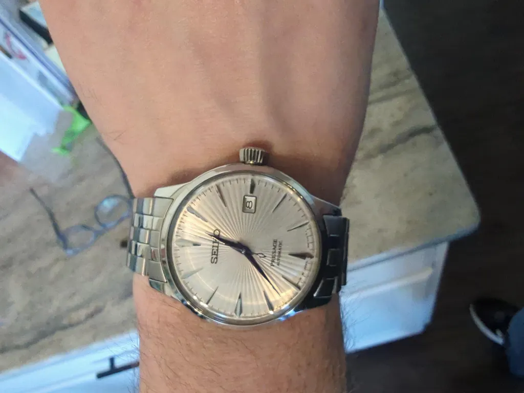 The standout feature is the silver dial with a subtle sunray finish, offering a minimalist yet sophisticated look that suits both business and formal wear. Powered by the reliable Seiko 4R35 automatic movement, it offers smooth timekeeping with both automatic and manual winding capabilities, plus a 41-hour power reserve.